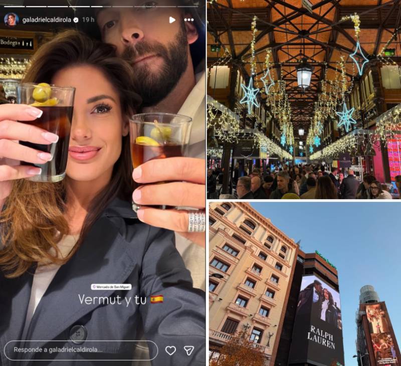 "Vermut y tú", se lee en una historia en la que posa con Sumar, ambos con vasos de licor en sus manos. Antes, había dado un vistazo a la Gran Vía, el Mercado de San Miguel y una reunión con amigos.