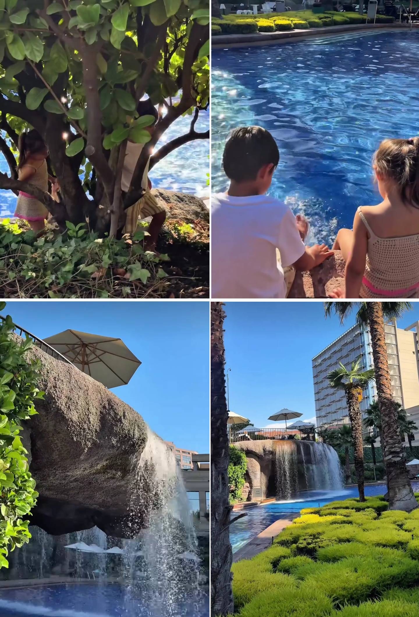 Y en efecto, las imágenes muestran a Noah y Leiah corriendo sobre el césped, o pasando el rato en medio de la vegetación. También se recrean en la piscina, que cuenta con una enorme cascada y está bordeada por palmeras y muchos otros árboles.