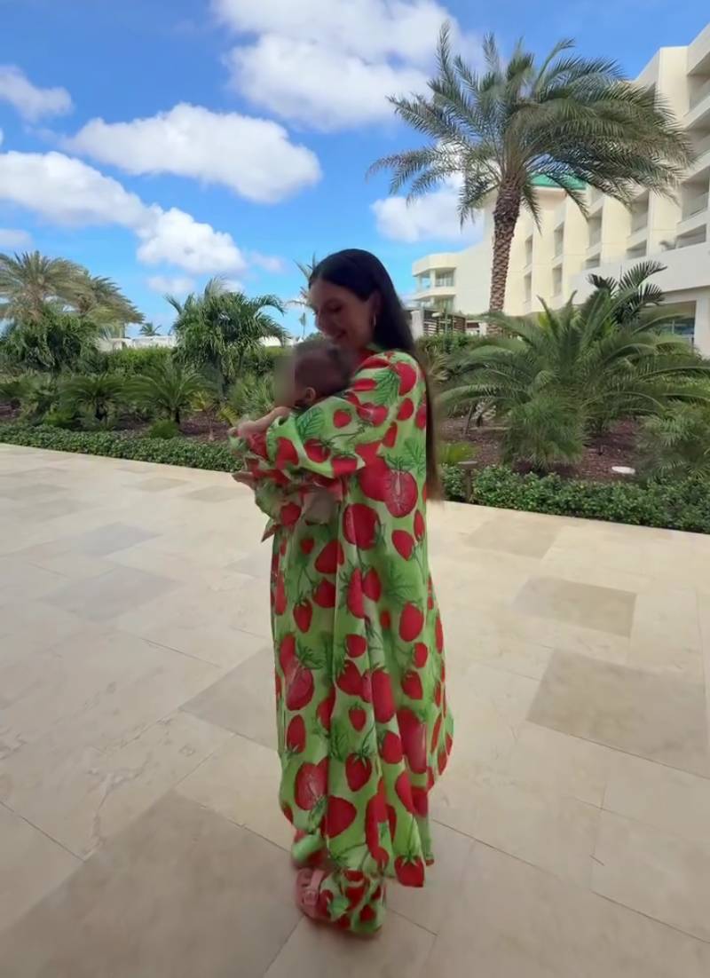 "Desde que soy mamá, los looks son en match", escribió Lemos sobre el video, en el que carga tiernamente a su hija mientras gira para mostrar al completo su ropa. En el fondo se aprecia un ambiente tropical, por lo que las imágenes seguramente fueron captadas en Aruba.