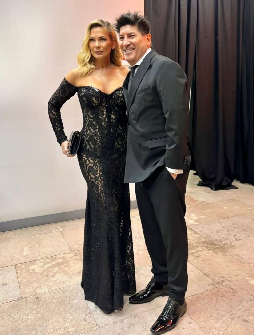 Para la ocasión, la modelo argentina lució un vestido de gala que destacó por su diseño ajustado de encaje, hombros caídos y escote corazón. La pieza, creada especialmente para ella, combinó sensualidad y distinción en cada detalle.