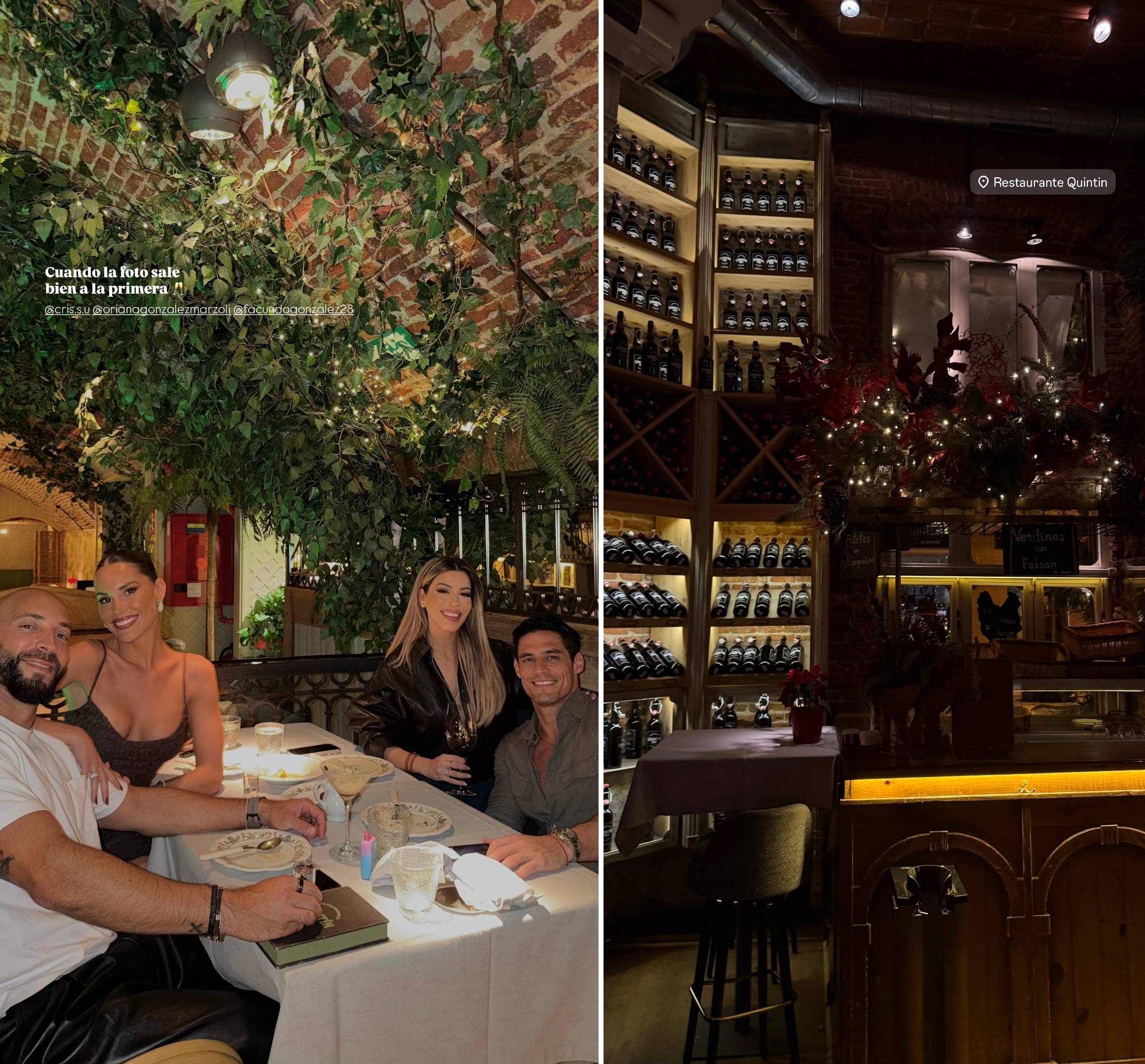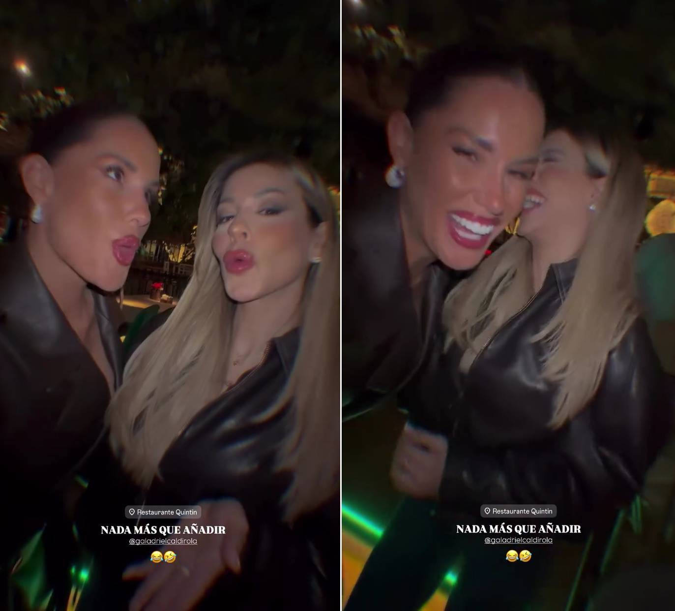 Las dos chicas reality registraron en sus historias de Instagram su salida doble al restaurante Quintín de Madrid. "Nada más que decir", se lee sobre un breve registro donde ambas lanzan besos al aire y luego ríen a carcajadas, con actitud cómplice.
