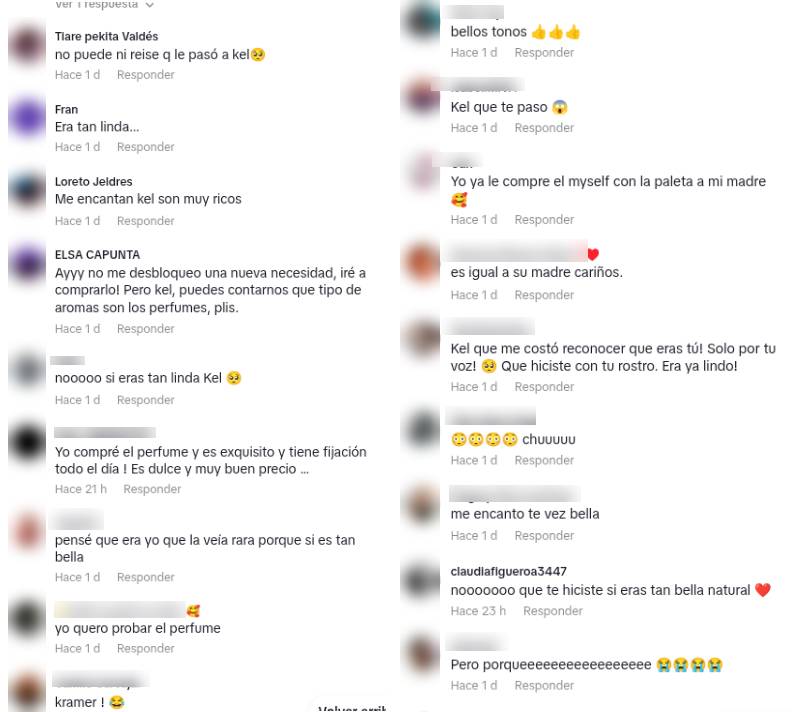 "Me costó reconocer que eras tú, solo por tu voz"; "¿Qué hiciste con tu rostro? Era ya lindo"; "¡No! ¿Qué te hiciste? Si eras tan bella natural"; "Tenía tan linda la carita"; "Esta niña era bonita en el pasado"; "No la conocí, natural era hermosísima"; "Kel, si era tan linda, quedé impactada", son solo algunos de los mensajes.