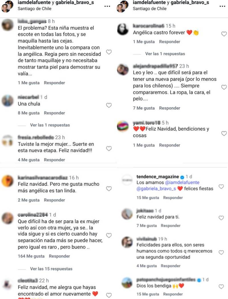 "¿Por qué tenía que ser así, teniendo una linda esposa?"; "Tu ex es una dama"; "Qué lata, teniendo una linda familia"; "Mis respetos, pero amo a Angélica"; "Feliz Navidad. Pero me gusta mucho más Angélica, es tan linda", escribieron algunos internautas.