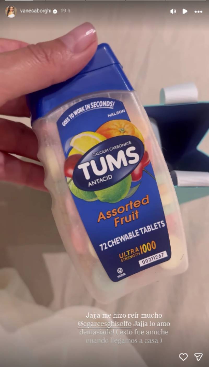 Pero no era el artículo de lujo que ella pensó. "Y veo acá, y es una Tums", dijo al sacar el regalo, unas tabletas masticables para mejorar la digestión y aliviar la acidez.