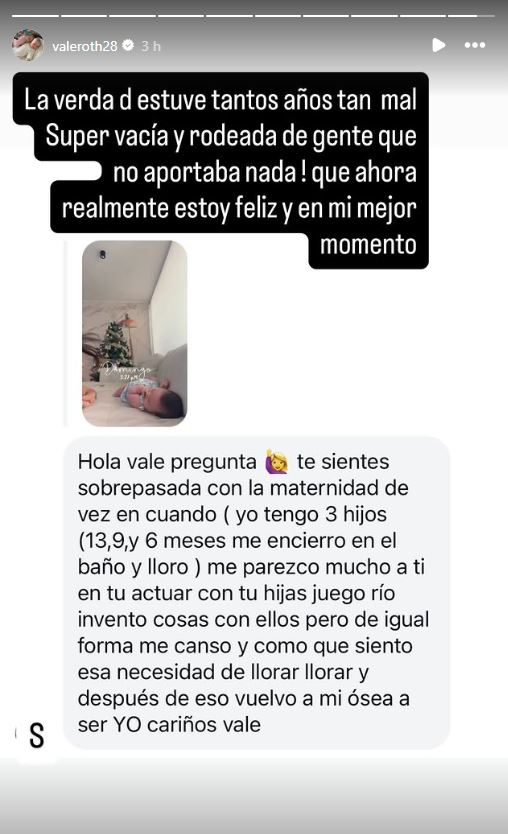 Vale Roth responde a seguidora sobre la maternidad