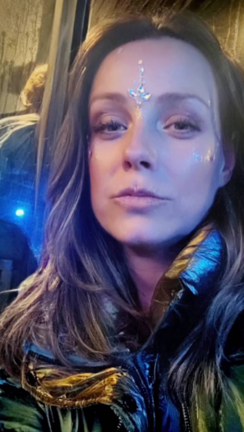 "Buena fiesta la de anoche. Yap. Me gustó el look que me hicieron unas chicas que ponían brillos en la cara y estuve calentita con mi parka verde metálico", escribió la actriz en la descripción de un post de Instagram, donde registró su celebración.