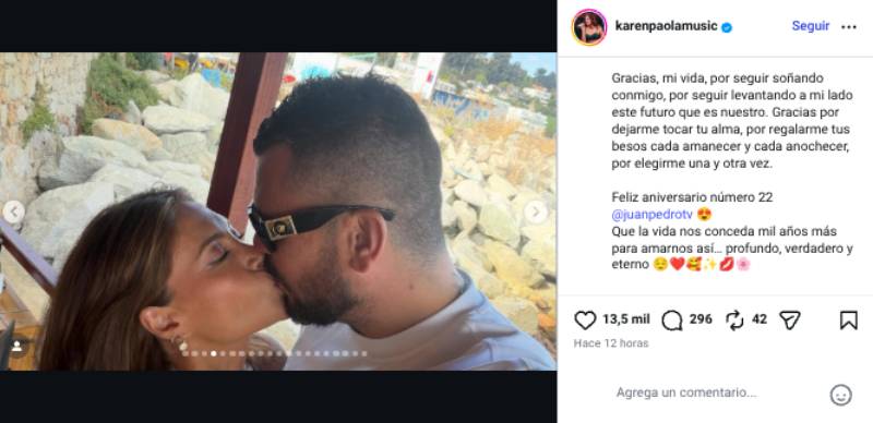 Los emotivos mensajes de Karen Paola y Juan Pedro en su aniversario 22: "Mi lugar siempre ha sido a tu lado"