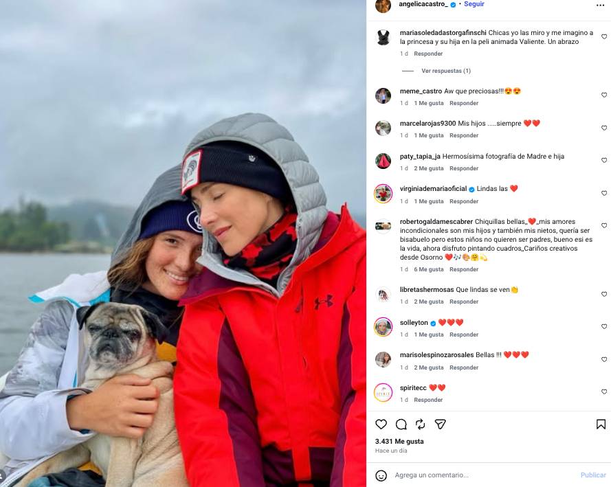 "Chicas, yo las miro y me imagino a la princesa y su hija en la peli animada 'Valiente'. ¡Un abrazo!", comentó. Otros respondieron la pregunta de Castro, quien les pidió decir quiénes son sus amores incondicionales. La mayoría nombró a sus propios hijos.