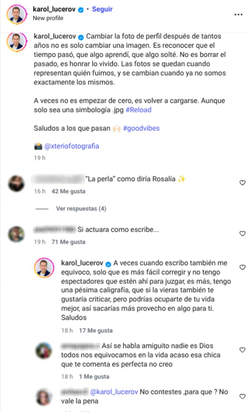 En su comentario, el internauta escribió: "Si actuara como escribe...", insinuando una contradicción entre el mensaje del post y la conducta de Karol Lucero.