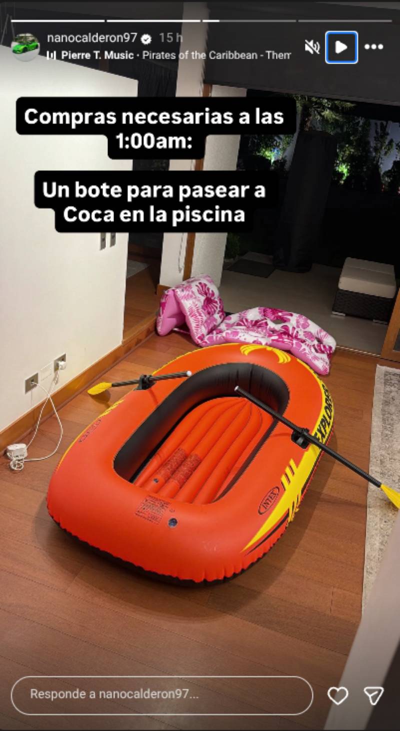 "Compras necesarias a la 1:00 am: Un bote para pasear a Coca en la piscina", escribió el empresario en su registro, donde se ve la embarcación.
