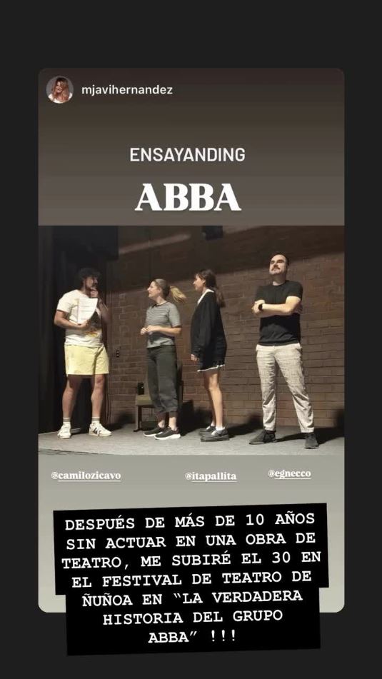 "Después de 10 años sin actuar en una obra de teatro, me subiré el 30 al Festival de Teatro de Ñuñoa..." anunció en su cuenta de Instagram