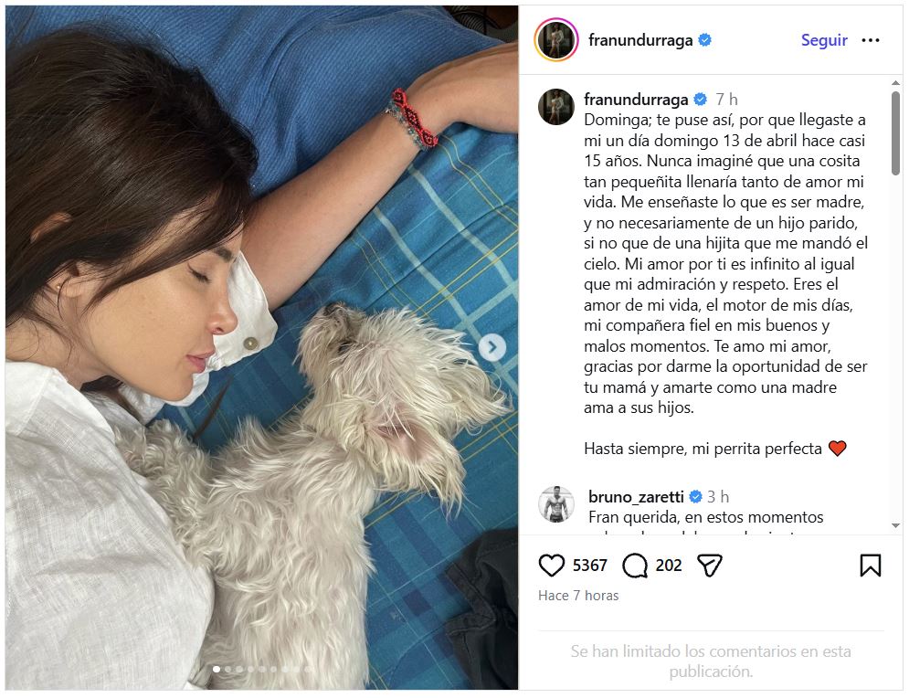 Fran Undurraga sufre con la muerte de su mascota