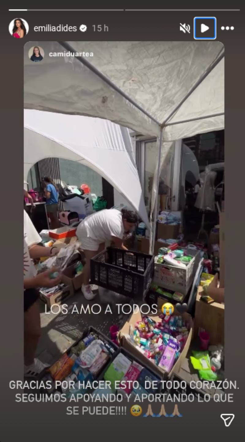 Emilia Dides compartió en sus historias de Instagram imágenes de voluntarios recolectando insumos para los afectados por el siniestro. "Gracias por hacer esto, de todo corazón. Gracias por seguir apoyando y aportando lo que se puede", escribió.