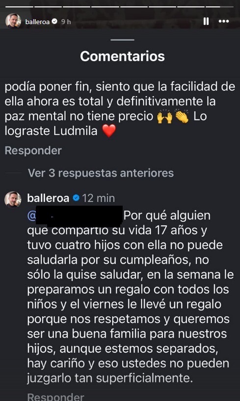 Asimismo, en sus historias de Instagram recalcó que sí saludó a Ludmila por su cumpleaños este 25 de enero, ya que aunque estén separados, sigue siendo la madre de sus hijos y ese cariño no se lo quitará nadie.
