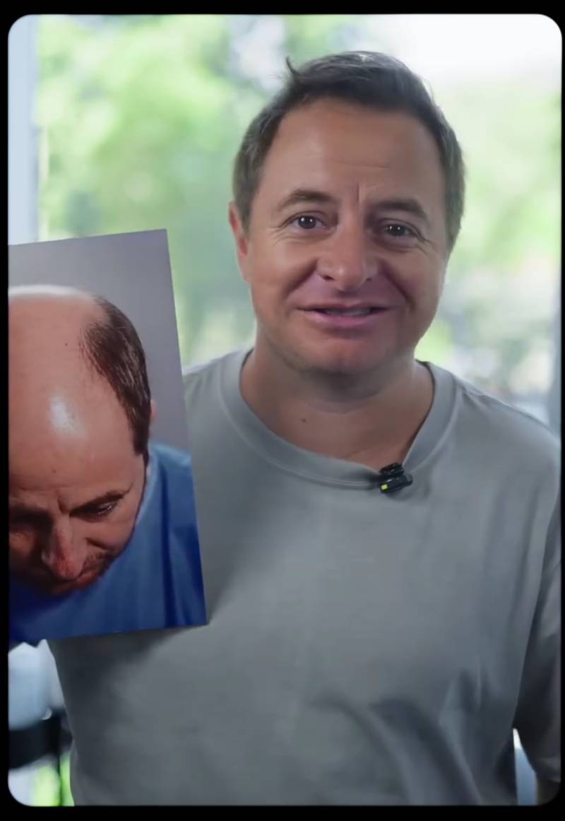 El periodista tenía una severa alopecia (pérdida de pelo) de grado IV y, tras implantarle miles de folículos, pasó de tener una notoria calvicie a lucir abundante cabello en la parte alta de su cabeza.
