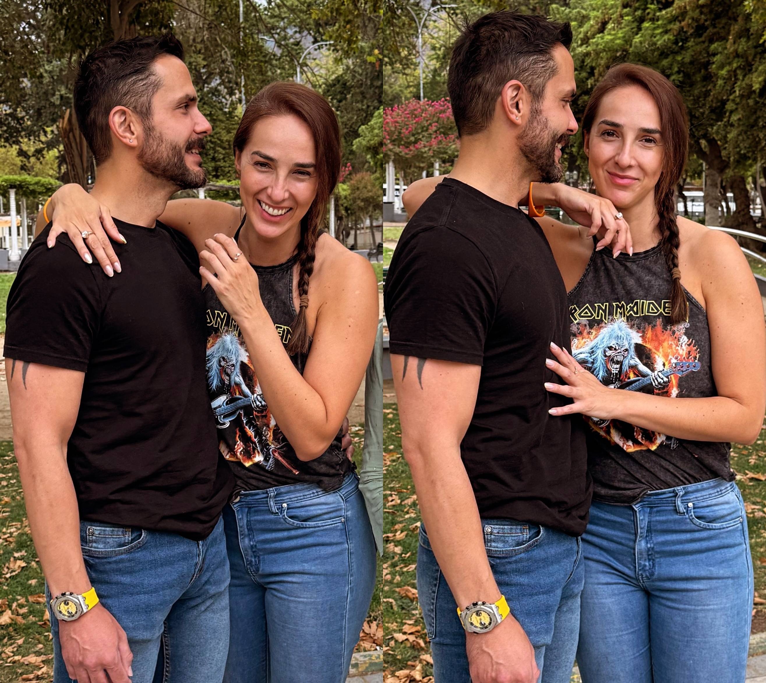 Las otras dos postales son de tono más romántico, donde Ballero y su pareja se abrazan y miran con ternura. Ella sería recepcionista en un gimnasio y su nombre María José.