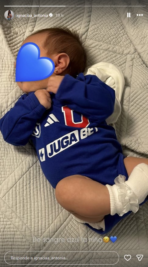 A través de sus historias, la joven compartió una foto donde aparece la pequeña Amelia con un particular body, o pilucho como se conoce popularmente.