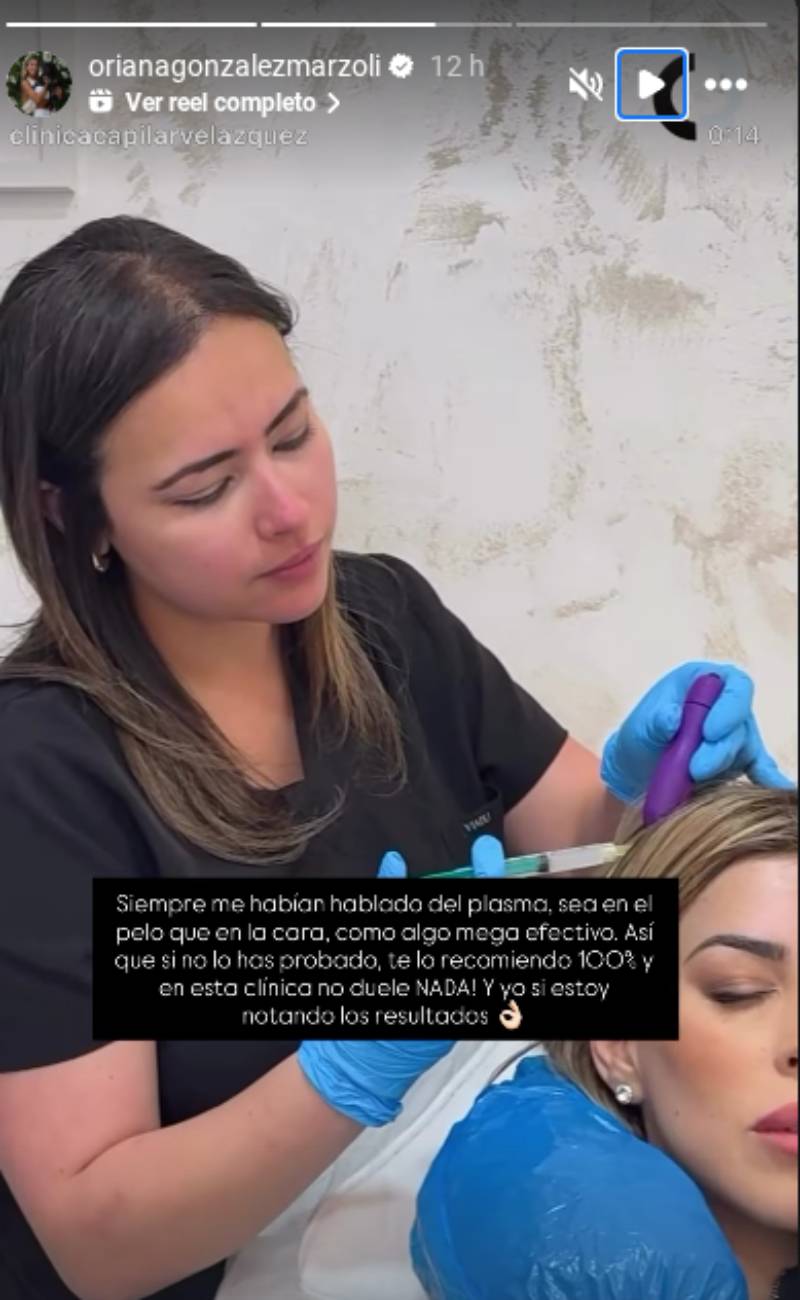 En un video en Instagram, una especialista de la Clínica Capilar Velázquez le recordó a Oriana cómo funciona el PRP: "Te extraigo la sangre, luego la ponemos en una máquina que nos va a separar los glóbulos rojos de los glóbulos blancos".