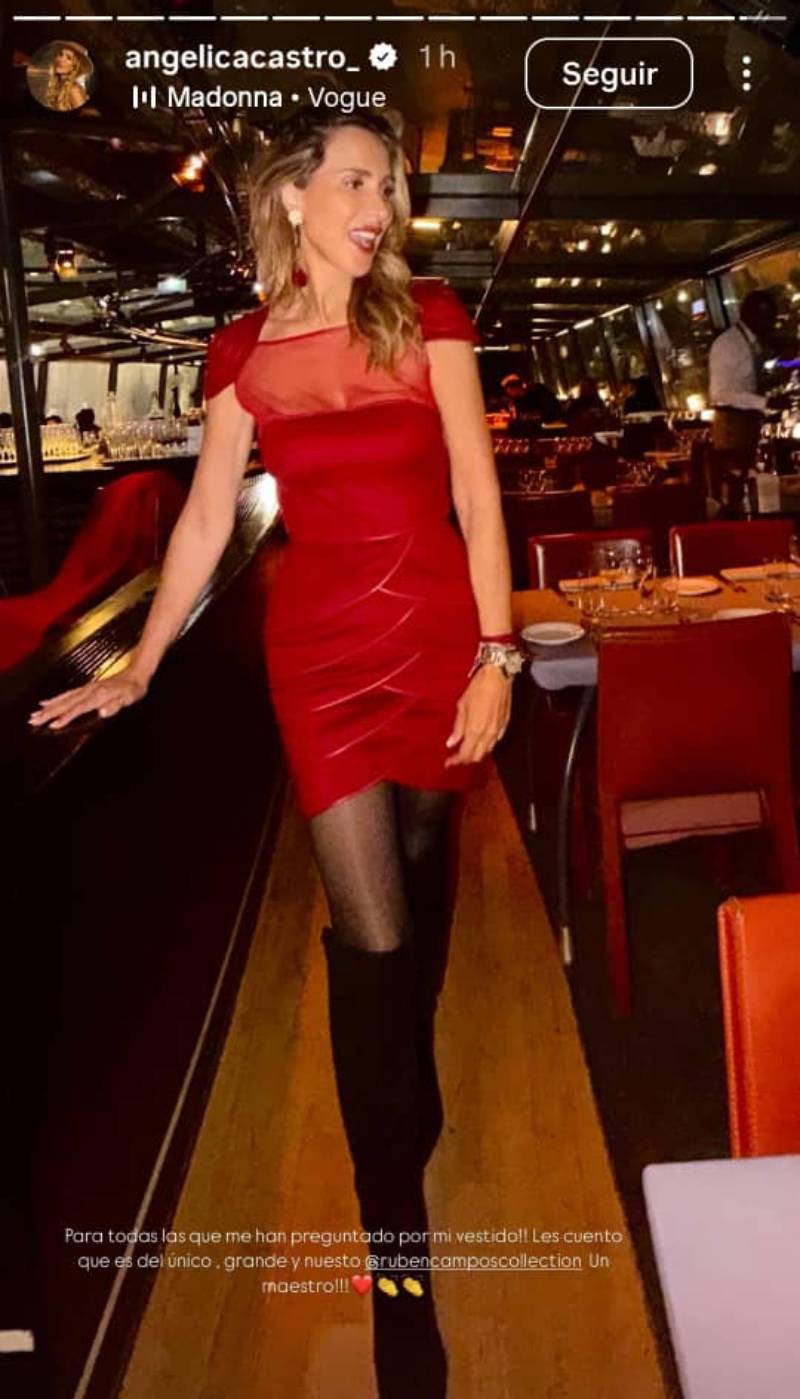 "Coqueteando con la Torre Eiffel", escribió en su post. Para la ocasión, Castro lució un ceñido y corto vestido rojo que resaltó su figura con delicados detalles de transparencia en el escote y los hombros.