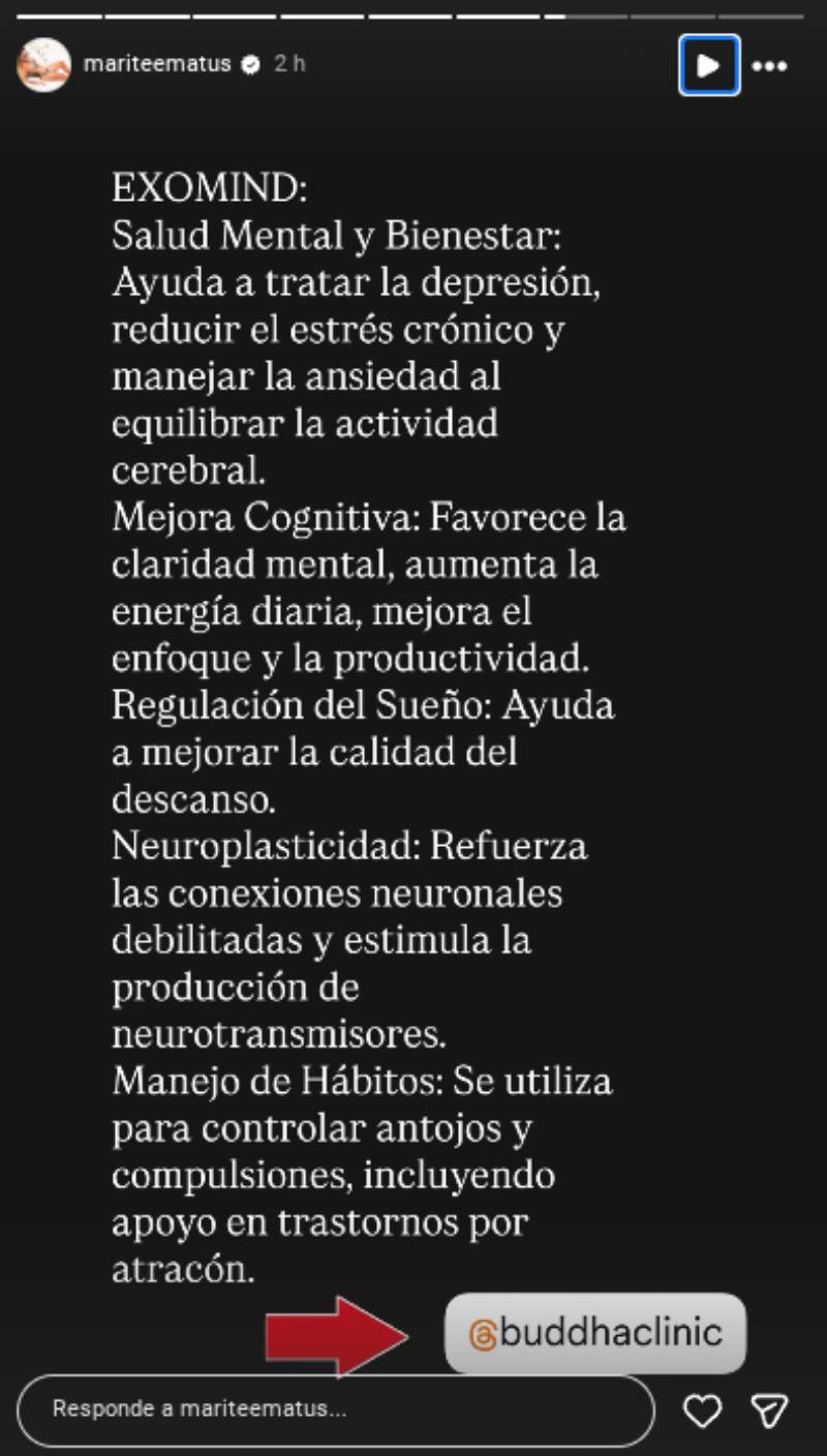"No es canje, los buenos datos se comparten", aclaró en su publicación, donde mencionó que la terapia se llama Exomind.