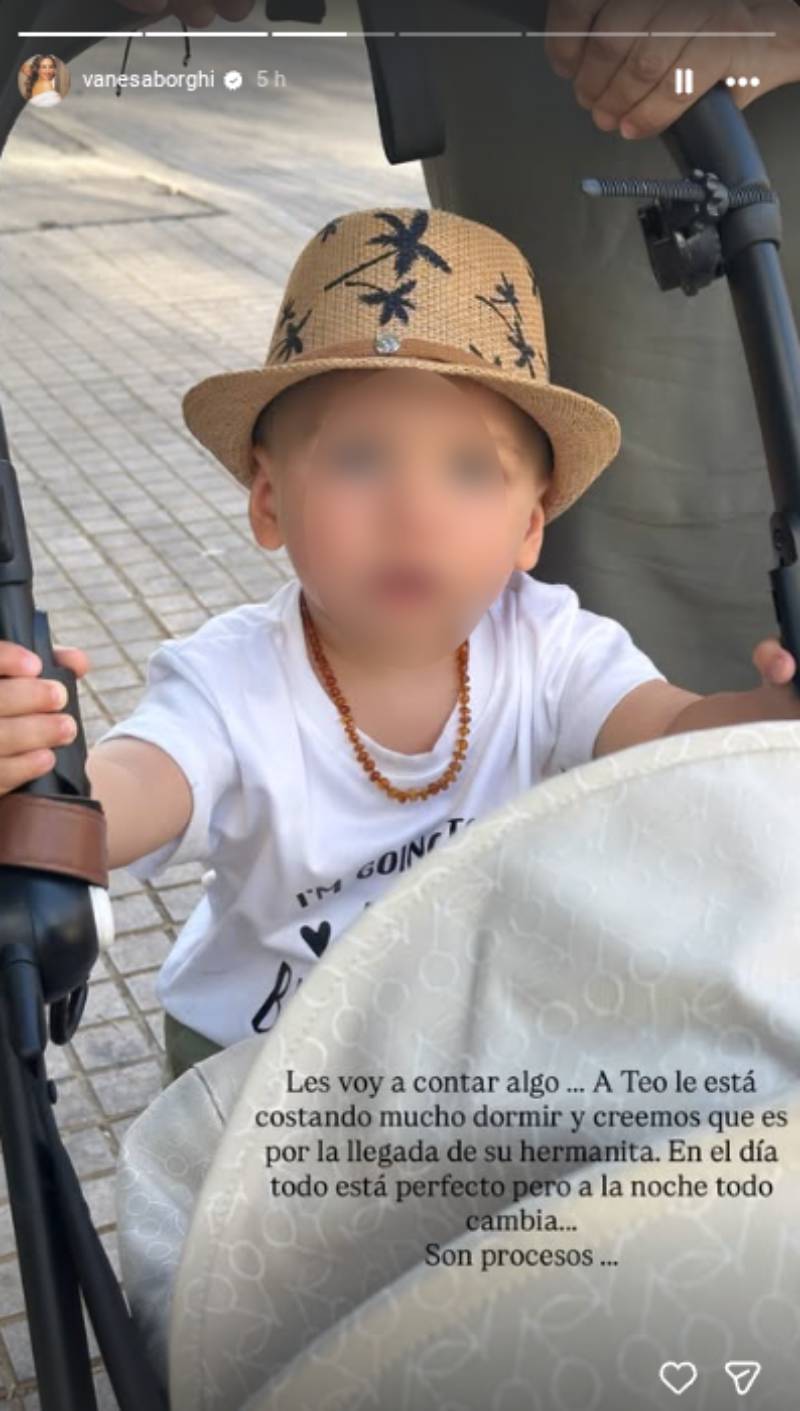 "Les voy a contar algo. A Teo le está costando mucho dormir y creemos que es por la llegada de su hermanita. En el día todo está perfecto, pero a la noche todo cambia. Son procesos", escribió.