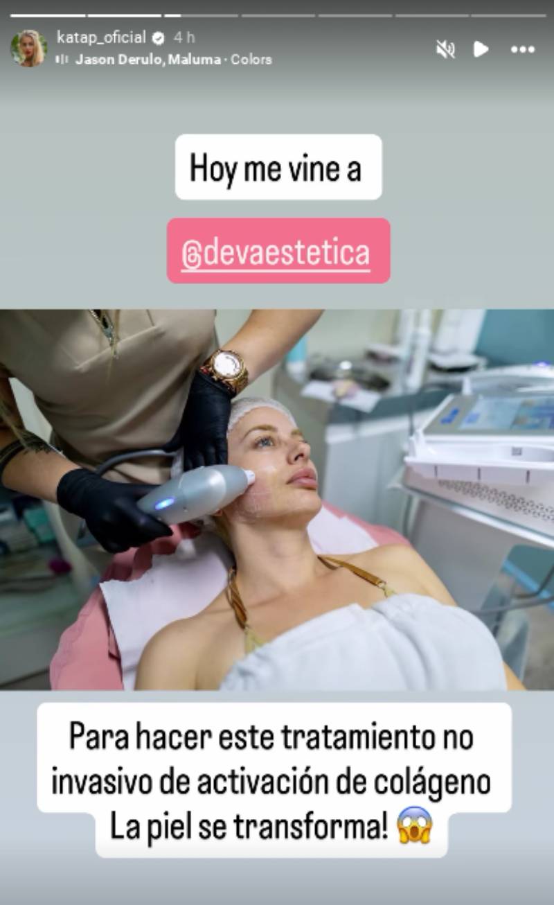 "Me vine a hacer este tratamiento no invasivo de activación de colágeno. ¡La piel se transforma!", escribió con entusiasmo en una foto donde se la ve recostada sobre una camilla, mientras pasan sobre su rostro un dispositivo de HIFU facial.