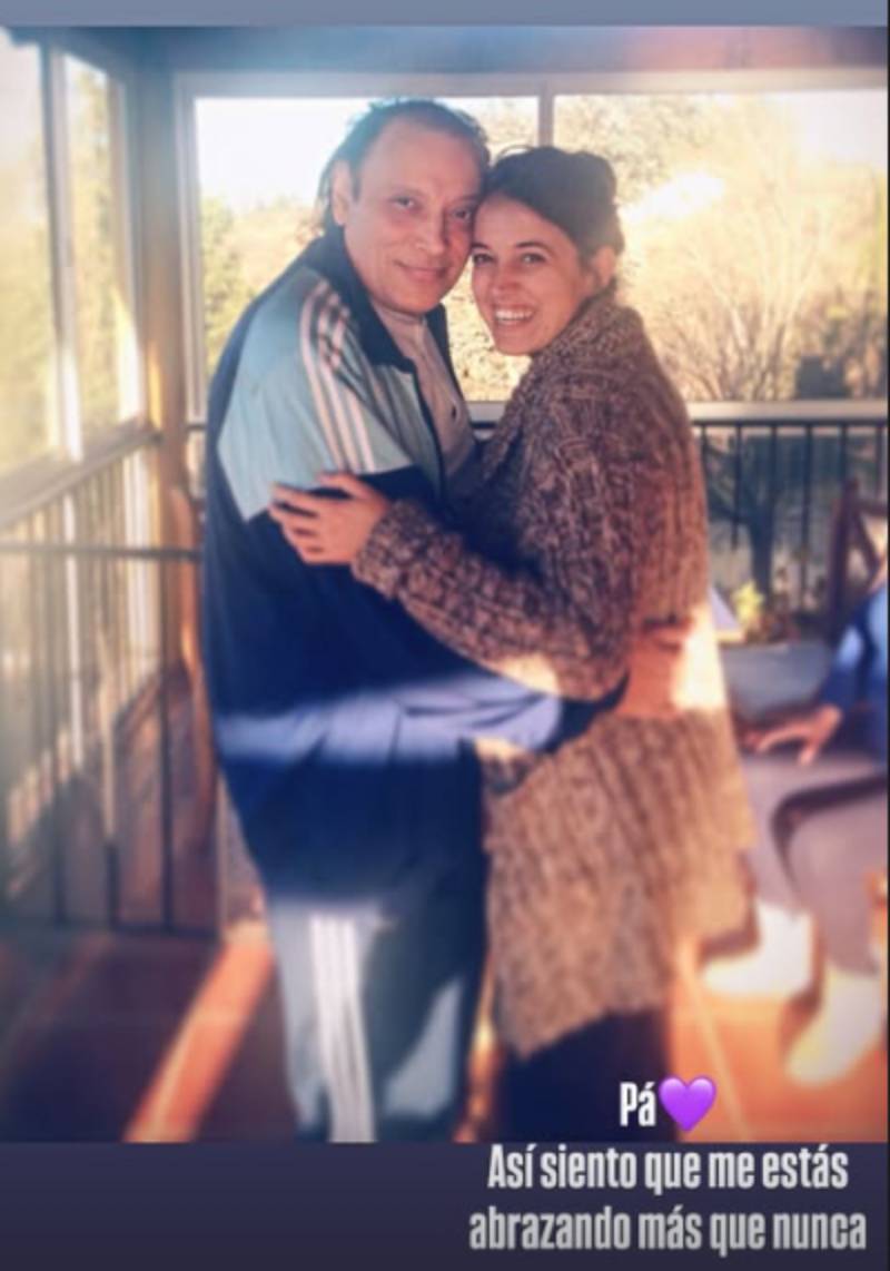 "Pa'. Así siento que me estás abrazando más que nunca", escribió sobre una antigua postal en la que estrecha en brazos a su padre, mientras ambos miran sonrientes a la cámara.