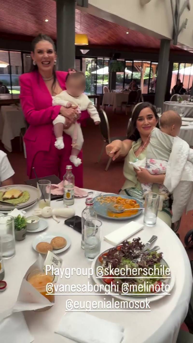 "Es contagioso. Uno, dos, tres y cuatro...", se le escuchó decir, al enumerar a los pequeños presentes en la mesa: Alma y Teo, hijos de Borghi y Carlos Garcés; Alanna, la bebita de Meli y Pangal Andrade; y Alegra, hija de Lemos y Matías Kosznik.