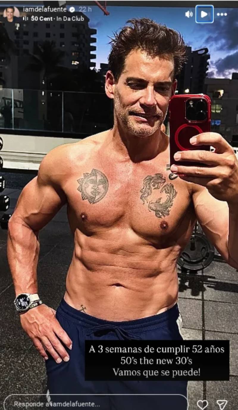 Para el galán de teleseries, "los 50 son los nuevos 30", como dijo en una historia de Instagram donde posó con su abdomen y torso al descubierto.