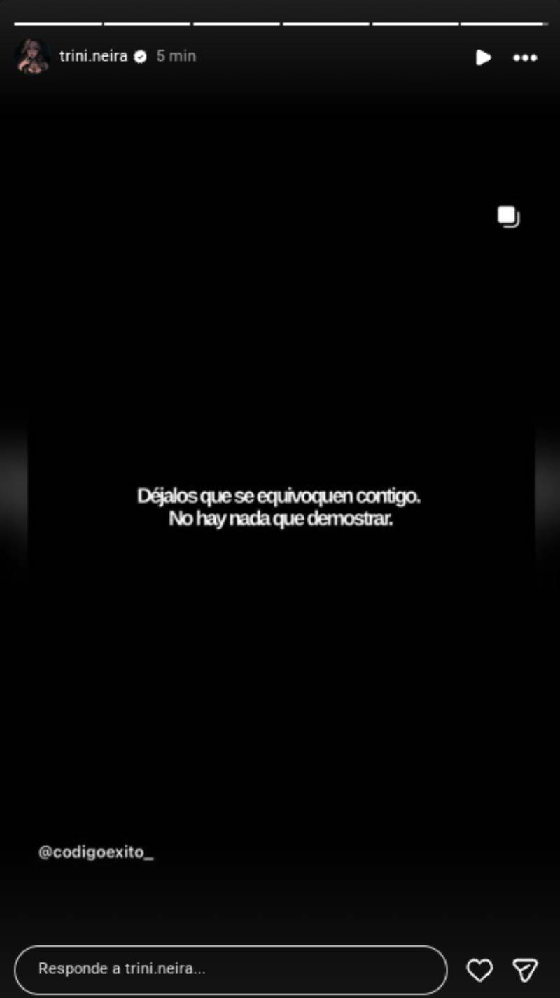 Ir a la siguiente notaEn esta ocasión la hija de Pamela Díaz reposteó la historia de una cuenta dedicada a frases de crecimiento personal. "Déjalos que se equivoquen contigo. No hay nada que demostrar", se lee sobre un fondo negro.