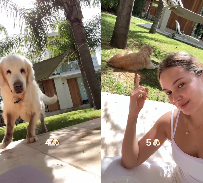 En un reel publicado en Instagram, la modelo rusa muestra cómo es hacer yoga cuando tienes un “zoológico” en la casa.