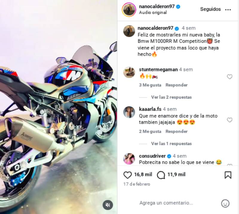 ¿Cuánto gastó Nano Calderón en su motocicleta?