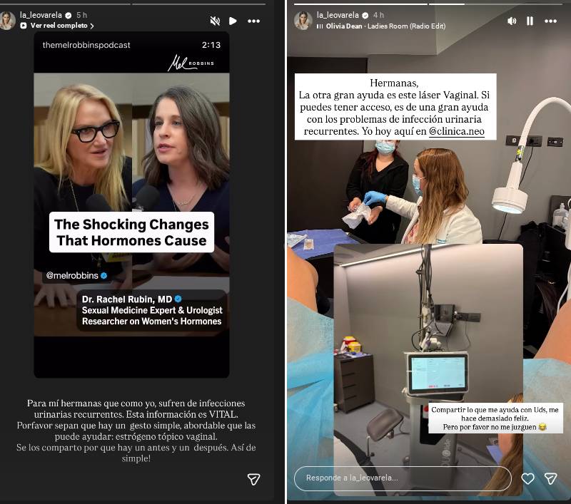 "Para mis hermanas que, como yo, sufren de infecciones urinarias recurrentes, hay un gesto simple que puede ayudar: el uso de estrógeno tópico vaginal", reveló y aseguró que "hay un antes y un después" de este tratamiento.