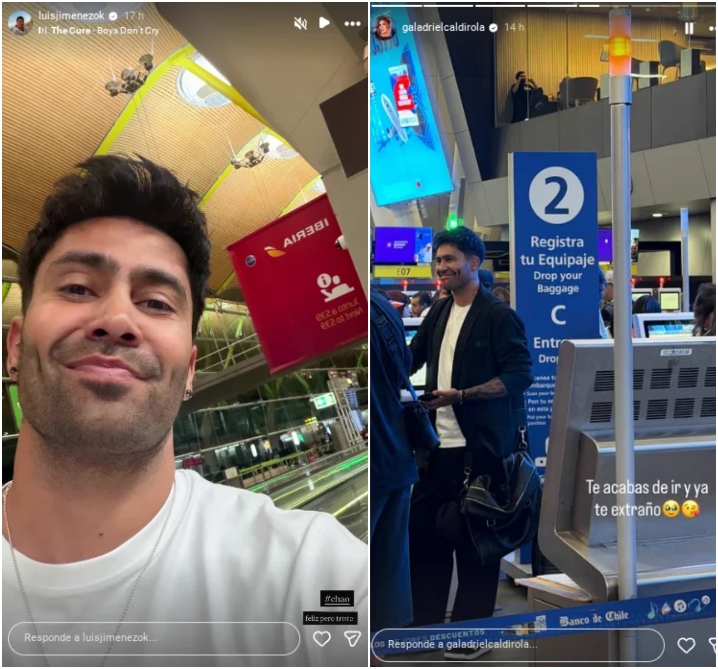 Horas más tarde, ocurrió la inevitable despedida. El exjugador subió una selfie desde el aeropuerto y escribió: "Feliz pero triste", lo que evidencia su deseo de quedarse con su polola.