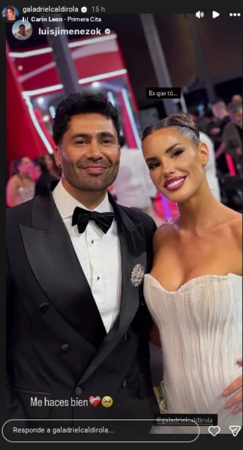 Jiménez fue el primero en publicar una romántica foto de ambos en la Gala de Viña del Mar 2026, en la que escribió "Es que tú...". Posteriormente, la influencer española reposteó el registro y completó la frase diciendo: "Me haces bien".