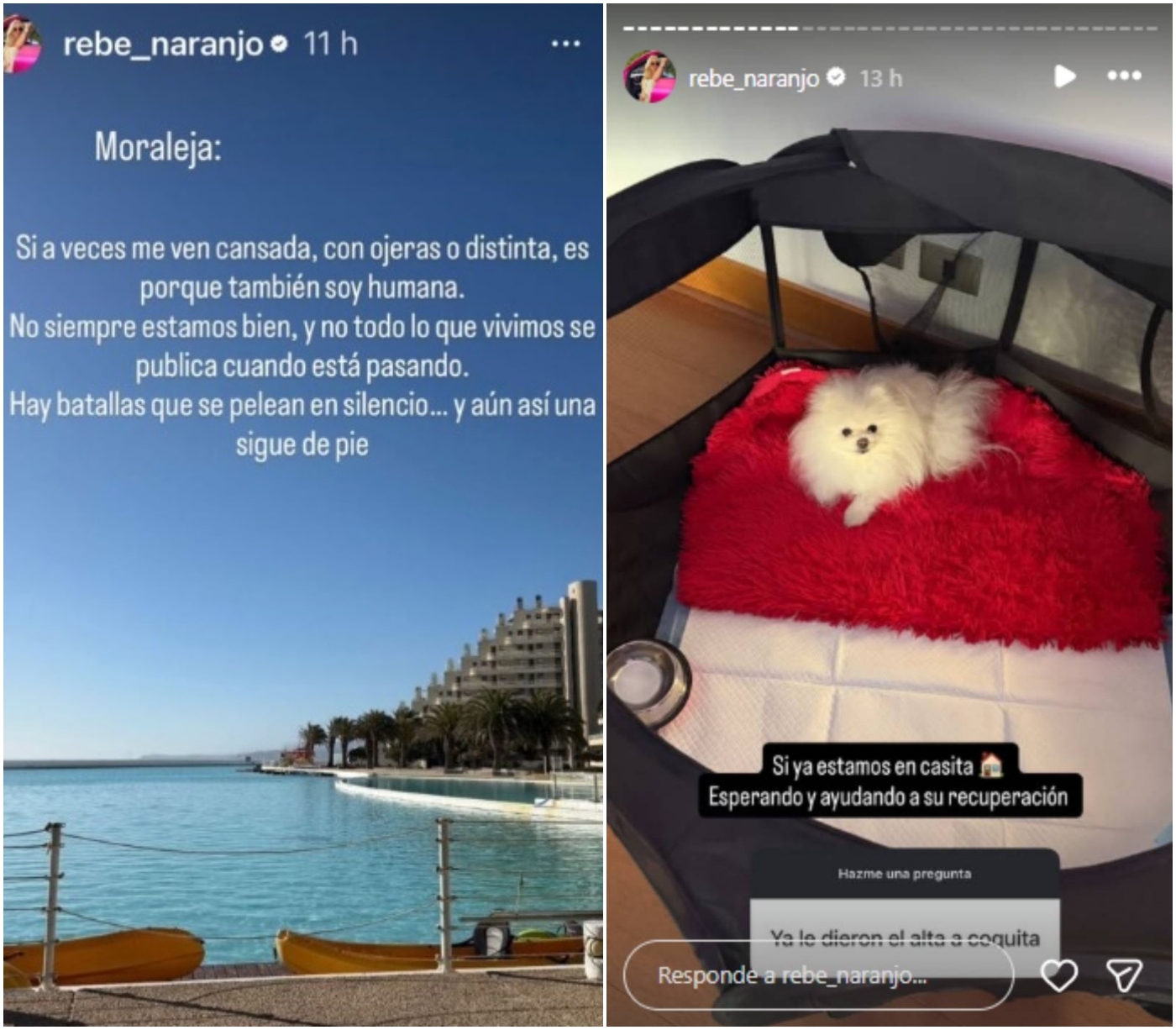 Ir a la siguiente notaMás tarde, en una dinámica de preguntas y respuestas, Rebeca Naranjo reveló que Coquita fue dada de alta y se encuentra en su hogar. "Esperando y ayudando a su recuperación", concluyó en una historia en la que se ve a la canina acostada en su cama.