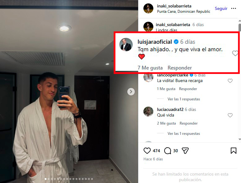 Pese al distanciamiento definitivo entre las figuras públicas, Luis Jara decidió dejar un mensaje en una publicación de Iñaki Solabarrieta, el menor de los Solabarrieta.