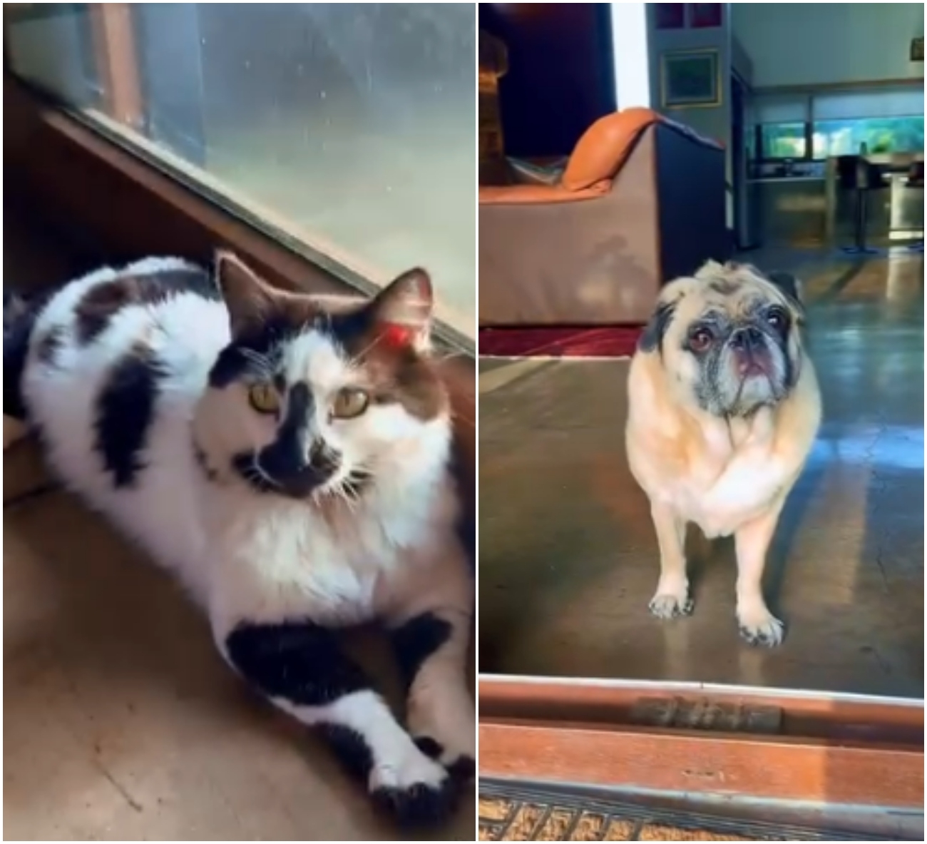 La familia se completa con Aslan, un adorable perro pug que convive en total armonía con los felinos, según muestra el registro que conmovió a sus seguidores.