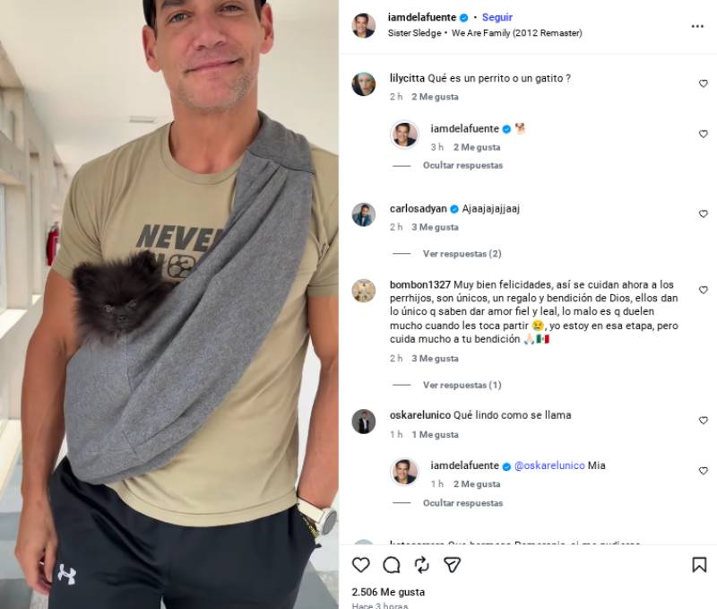 Ir a la siguiente notaEl deportista y piloto no dio tantos detalles sobre la cachorrita, pero respondió algunas preguntas de sus seguidores. "¿Cómo se llama?", quiso saber uno de ellos, y el artista reveló el nombre de la perrita: Mía.