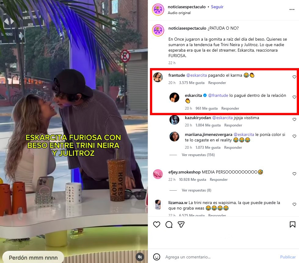 Aunque Eskarcita no quedó ahí, puesto que más tarde fue hasta una publicación de una cuenta de farándula para dejar un llamativo mensaje.