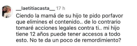 "Mi hijo tiene 12 años, puede tener acceso a todo esto. ¿No te da un poco de remordimiento?", agregó.