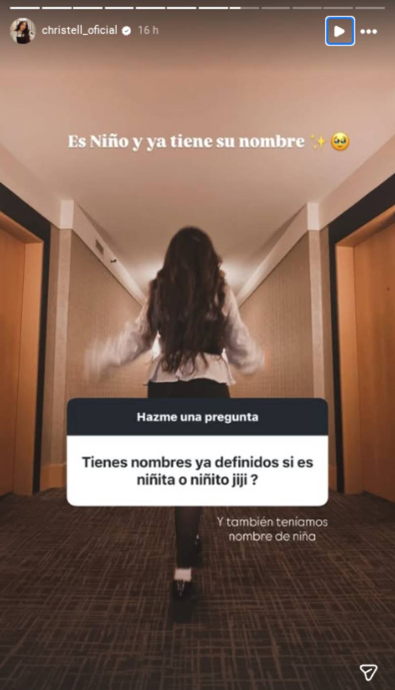 Vestida con un conjunto color café de buzo y suéter de cuello alto, Rodríguez escribió que está en la semana 24, alrededor del sexto mes. "Ya se está notando", escribió en su historia, antes de comentar que ya sabe cómo se va a llamar su bebé.