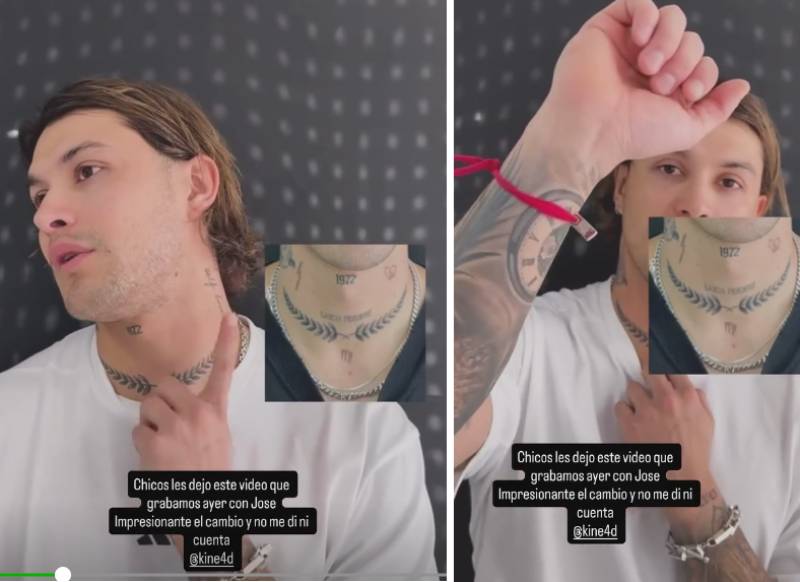 "Este tatuaje se me quemó un poco", comentó mientras señalaba su cuello. "La foto que está en el video de la historia anterior es cómo yo llegué de la otra clínica antes de empezar con José María", aclaró.