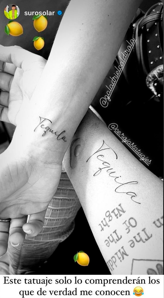 El otro está en su muñeca, y es un tatuaje que se hizo junto a su amigo y mánager Suro Solar. En él está la palabra "Tequila".