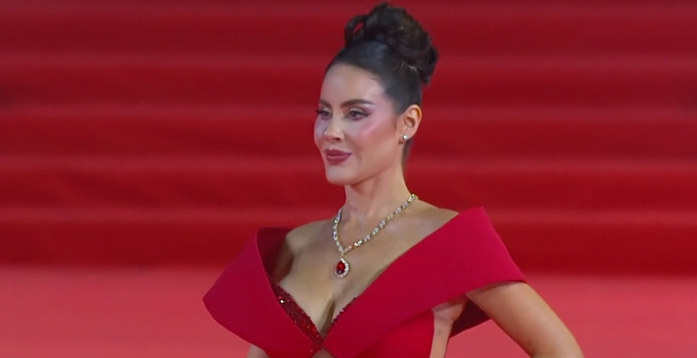 La influencer desfiló con un imponente vestido rojo que destacó por su diseño sofisticado. La prenda incorporaba una llamativa cola que simulaba pétalos de rosas, creando un efecto escénico que no pasó desapercibido.