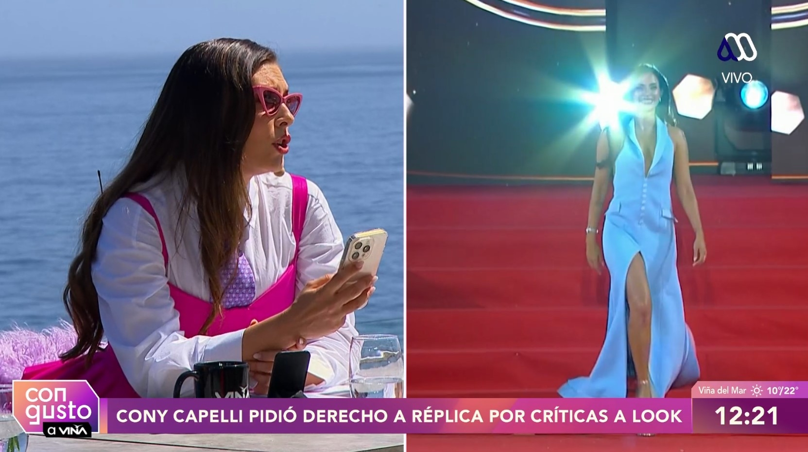 Las palabras de los panelistas provocaron la reacción de Cony Capelli, quien utilizó su derecho a réplica para revelar que tuvo complicaciones con su vestido.