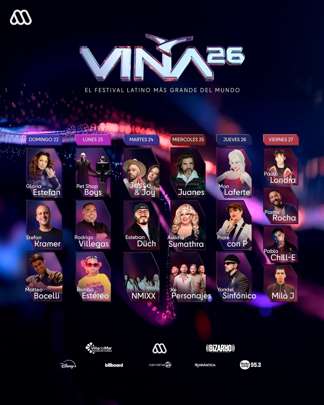 Día por día: Así quedó la parrilla completa del Festival de Viña 2026