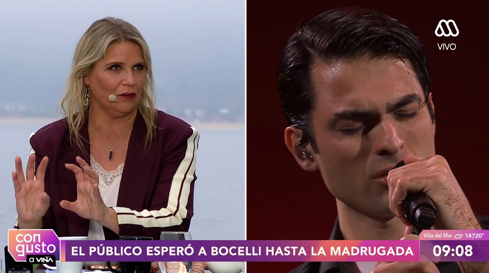 Misma lectura que realizó María Eugenia Larraín, que aseguró que "el orden más lógico era que abriera Matteo Bocelli con un show más acotado".