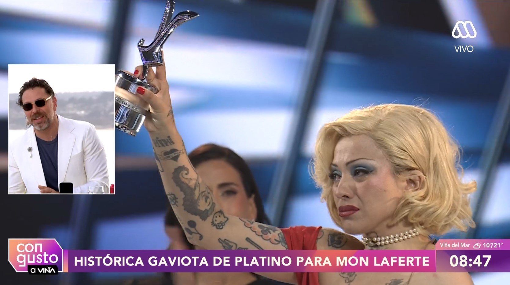 Tras una presentación de música y emoción pura sobre el escenario de la Quinta Vergara, Mon Laferte recibió la codiciada Gaviota de Platino. La cantante nacional se unió a un selecto grupo de artistas que han conseguido el galardón, pues solo ocurre en circunstancias especiales, siendo un reconocimiento exclusivo del Festival de Viña del Mar.