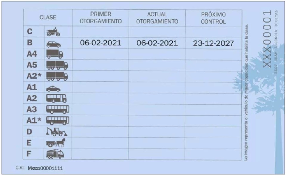 Por el reverso, el documento tendrá mayor información sobre el conductor, ya que tendrá una tabla con todas las licencias de conducir que tiene la persona, con sus respectivas fechas de otorgamiento y próximo control.